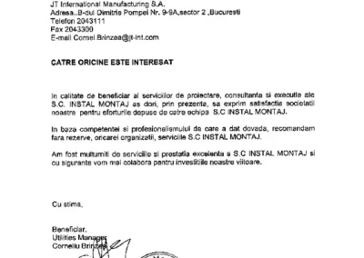 - Realizare în sistem “la cheie” (proiectare, execuție și punere în funcțiune) a două Stații de Pompare în conformitate cu standardul FM și normativele românești.