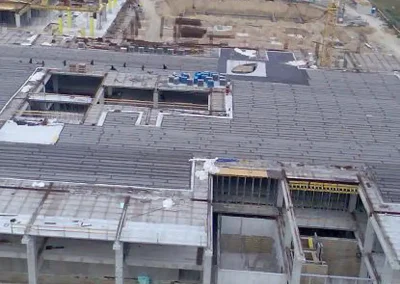 Instalatie de sprinklere si hidranti interiori – suprafata totala 74.000,00m2, P+3. Inainte de suspendarea lucrarilor din partea dezvoltatorului au fost executate instalatiile de stins incendiu pentru primul etaj ~18.500,00 m2